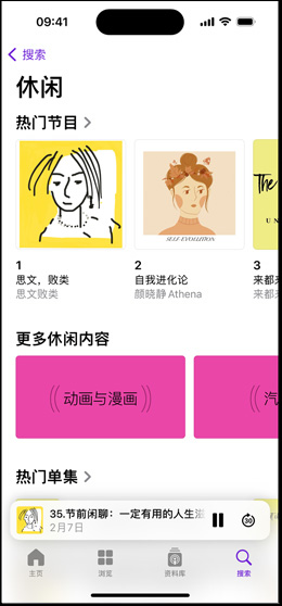 Apple 播客是你查找、关注和聆听各种热门播客节目的好去处。还有编辑精选和个性化推荐,让你轻松发现新节目。