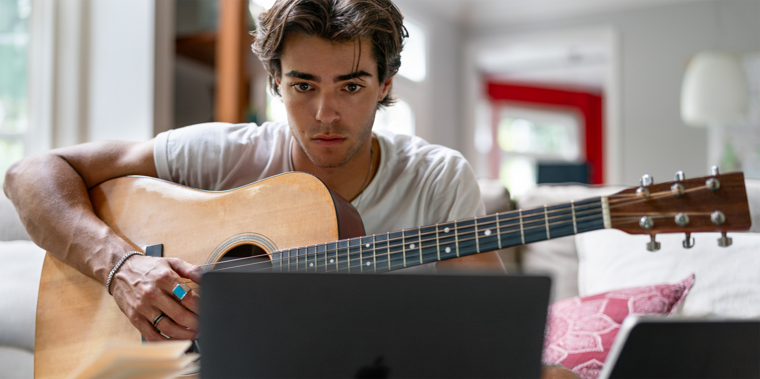 像许多学生一样,Max 不得不适应远程学习。在这种时候,MacBook Pro 比以往更能成为他的生活中不可或缺的部分。有了像 Logic Pro 这样的专业制作软件,MacBook Pro 便成了他的理想搭档,让卧室变身为专业录音室,并能满足创作的一切需求。