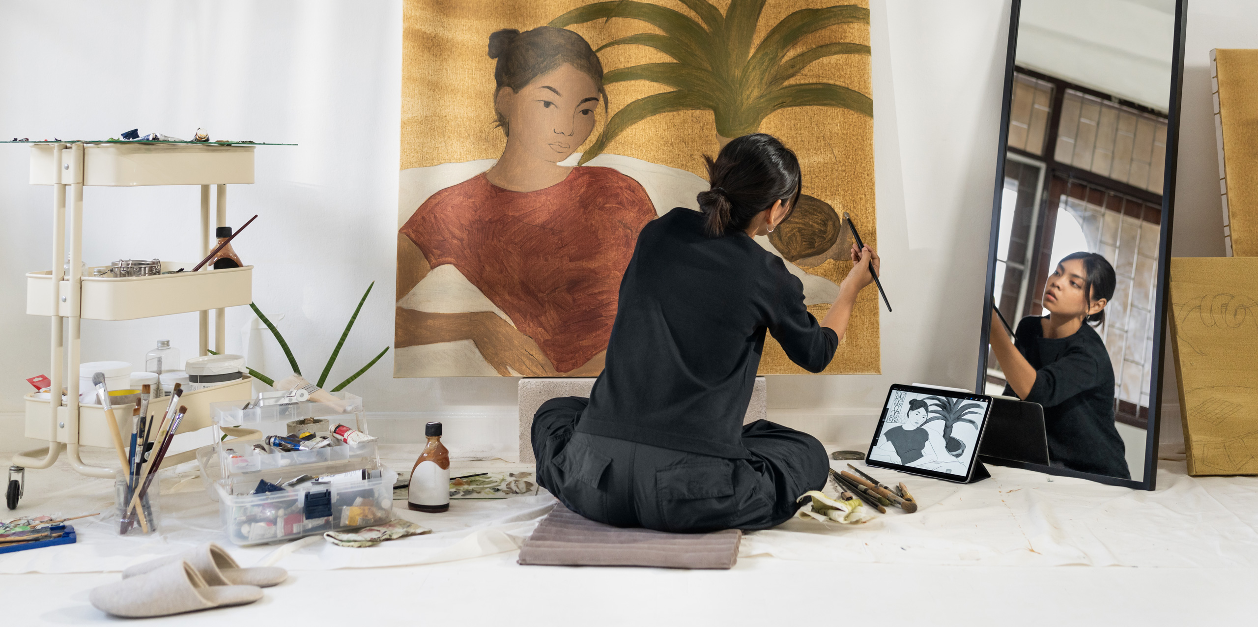 iPad 还为 Bim 的日常学习提供支持。她用 Apple Pencil 在 iPad 上使用 Goodnotes 来做笔记;用 iPad 上的 Microsoft Word 来编写艺术作品阐释。“在课堂上,我用 iPad Pro 展示作品。”Bim 表示,“12.9 英寸屏幕足够大,让教授可以轻松地观看我的创作。”
