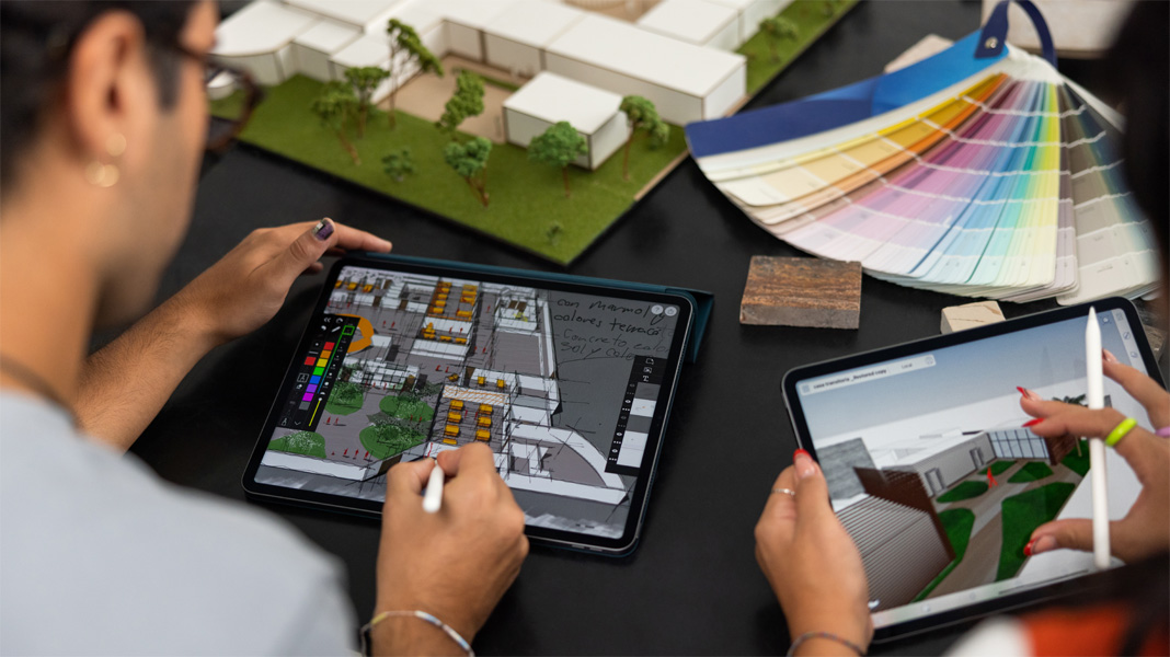 iPad 和众多强大的 app 搭配在一起构成建筑学课程的核心 ,如 Morpholio Trace、SketchUp、Sketchbook、Autodesk Formit、Voxel Max 和Procreate,学生们用这些学习如何创造数字概念、构建实时三维模型、执行专业制图及实现增强现实效果。