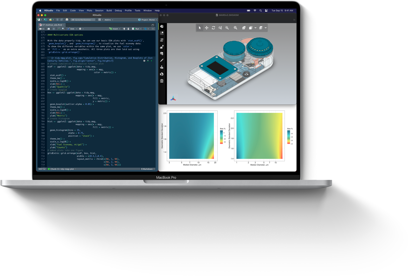 MacBook Pro 可为 Volckens 博士提供所需要的各种强大性能,不管是分析海量空气质量数据集,还是在互动式面板上呈现精美的可视化效果,都能齐头并进。