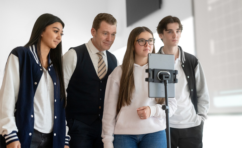 英语教师 Mike Edwards 使用强大的 Mac 进行多任务处理,提升工作效率。除了使用 PowerPoint 设计和创建精彩课程之外,日程安排和行政任务也尽在他的把控之中。在课堂上,他会通过隔空播放功能将 iPad Pro 上的课程内容传输到 Apple TV 上,这样他便可以四处走动并与学生展开一对一互动,而学生们也可以通过自己的 iPad 和 app 展示他们的所思所想。