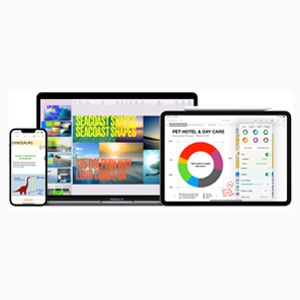 Pages 文稿、Numbers 表格和 Keynote 讲演是创建精彩作品的理想工具。模板和设计工具让你能够轻松上手。你甚至还能用 Apple Pencil 在你的 iPad 上添加插图和标注。而通过实时协作功能,整个团队成员无论用的是 Mac、iPad、iPhone 还是 PC,都能一起工作。