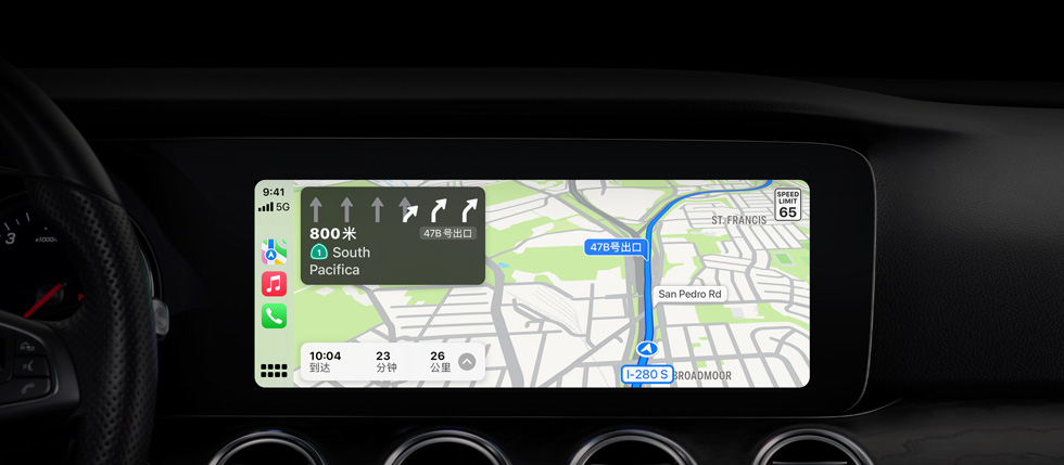 CarPlay 车载可以将强大、简洁的地图展现在驾驶员眼前。它能根据存储于设备上的数据,比如邮件、短信、通讯录和日历中的地址,来提供智能建议。借助详尽的地图和逐向语音导航,让你比以往更加轻松地抵达目的地。