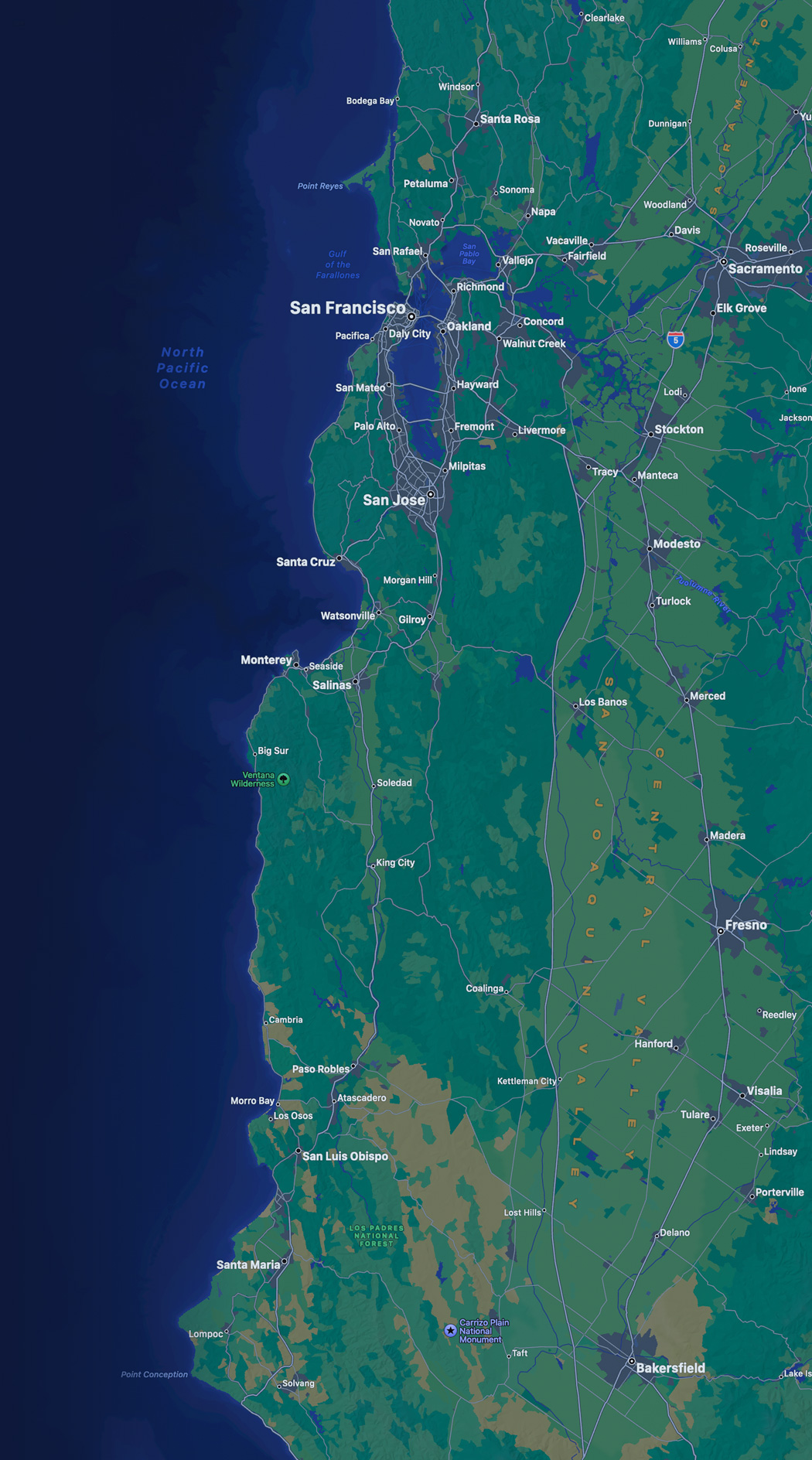 当你探索旧金山、洛杉矶、纽约或伦敦时,整座城市的高低起伏、街区、楼宇、树木,以及人行横道和转弯车道等细节,可以在你眼前一一展现。你还能以三维方式领略金门大桥等壮丽地标,而且在浅色和深色模式下还各有特色。此功能还将适用于更多的城市。