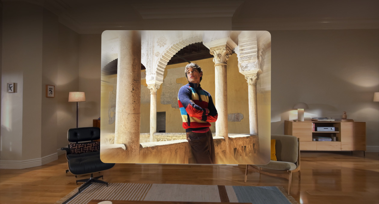 图像以“空间场景”生动呈现,营造逼真的立体纵深效果,带来栩栩如生的观感体验。你可在照片、Safari 浏览器中以空间场景进行浏览,第三方开发者也可以将其整合进自己的应用。